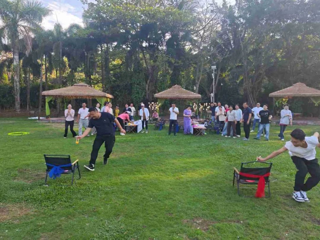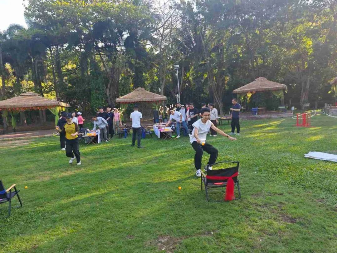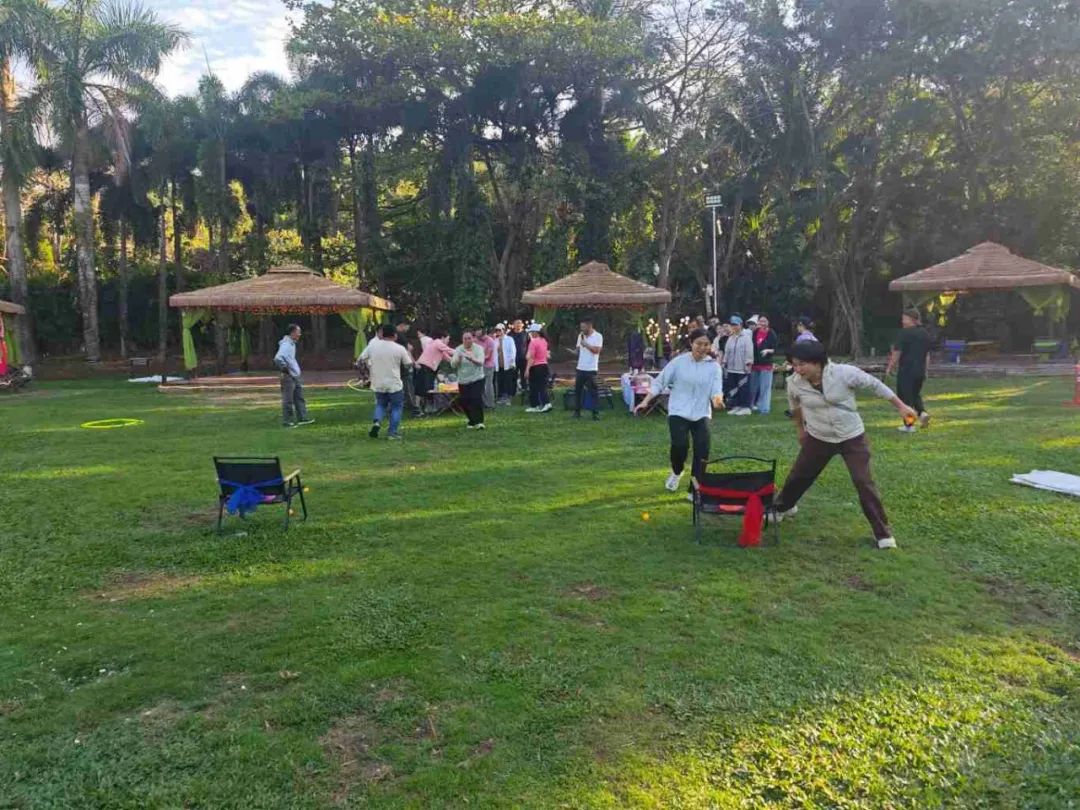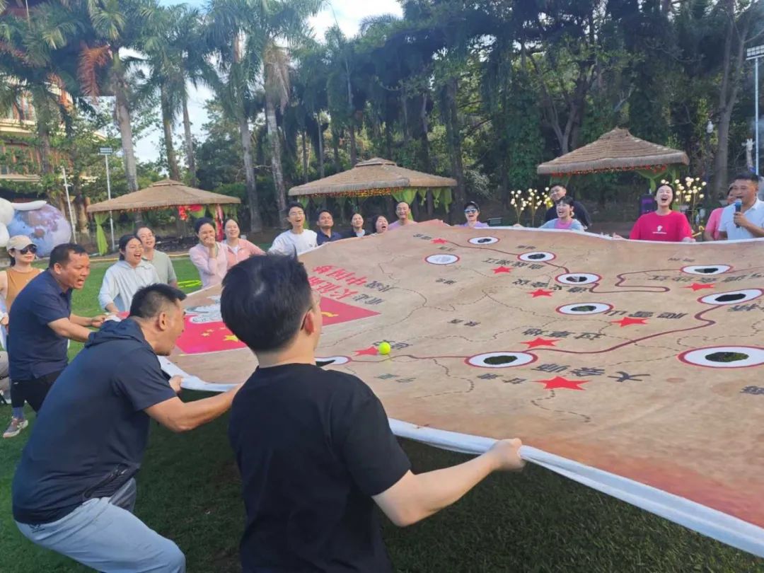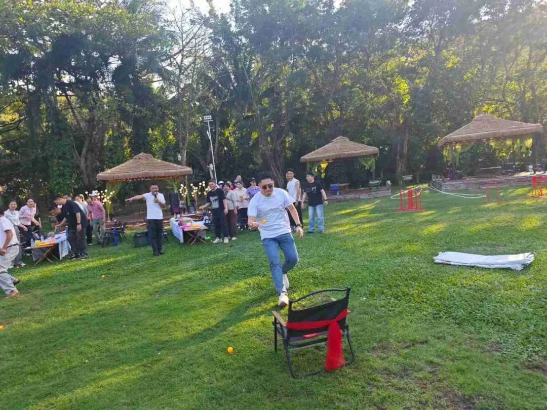 當日午后,全體員工滿懷期待地齊聚在團建活動場地?;顒右潦?,一系列妙趣橫生的暖場小游戲迅速點燃了現(xiàn)場的熱烈氛圍。在“四平八穩(wěn)”“筷子夾球”“草坪龍舟”“重走長征路”等游戲中,展現(xiàn)出了高度的團隊精神和競技熱情。這些小游戲不僅讓大家在輕松愉快的氛圍中迅速消除了工作中的疲憊與壓力,更讓大家深刻體會到了團隊協(xié)作的重要性,為后續(xù)的活動奠定了良好的基礎(chǔ)。
