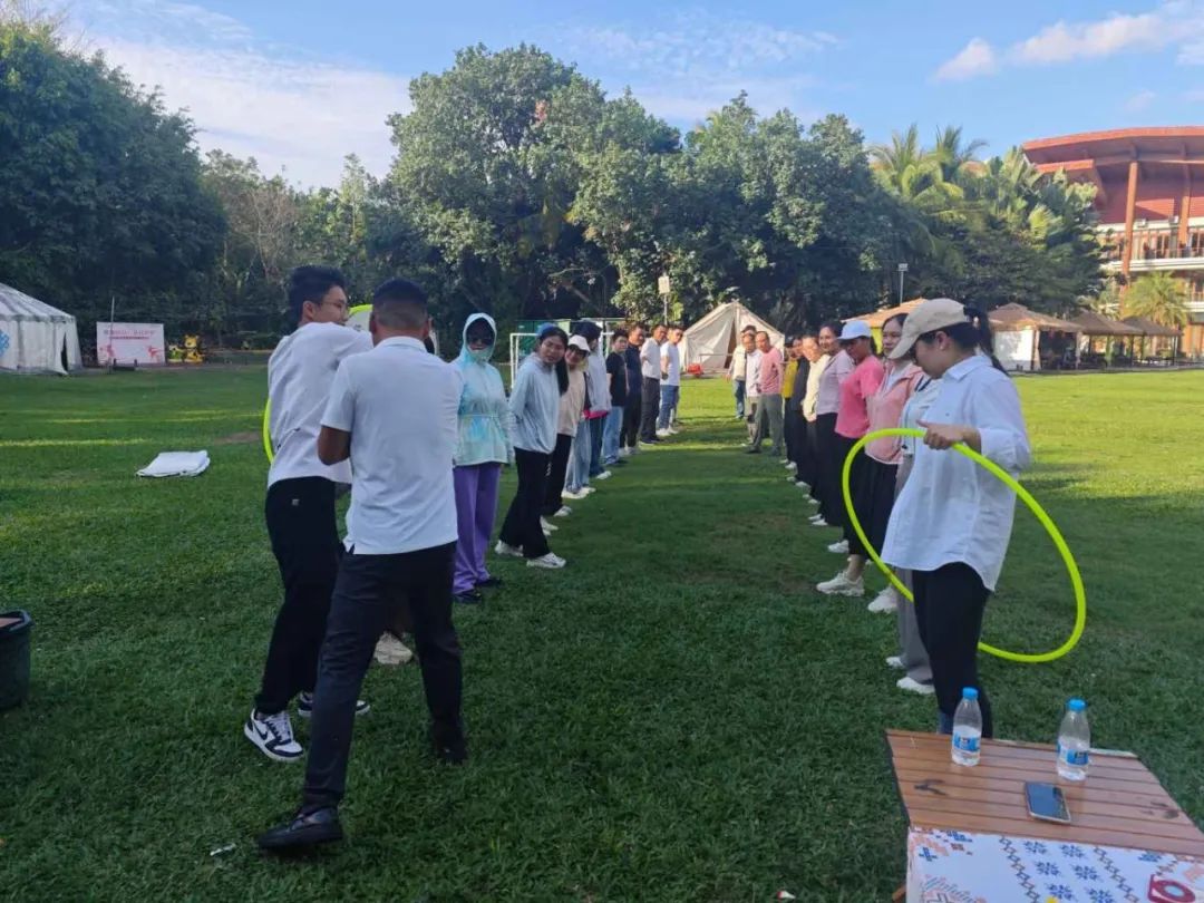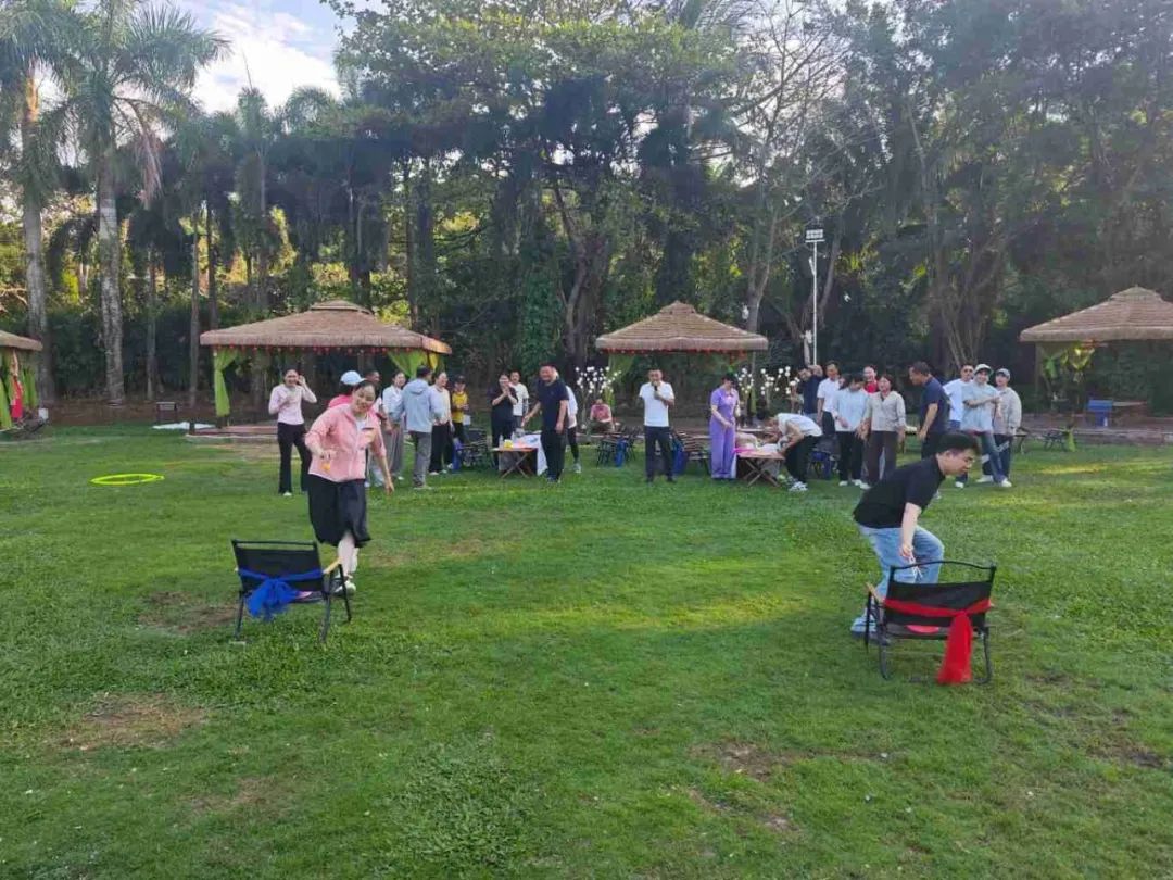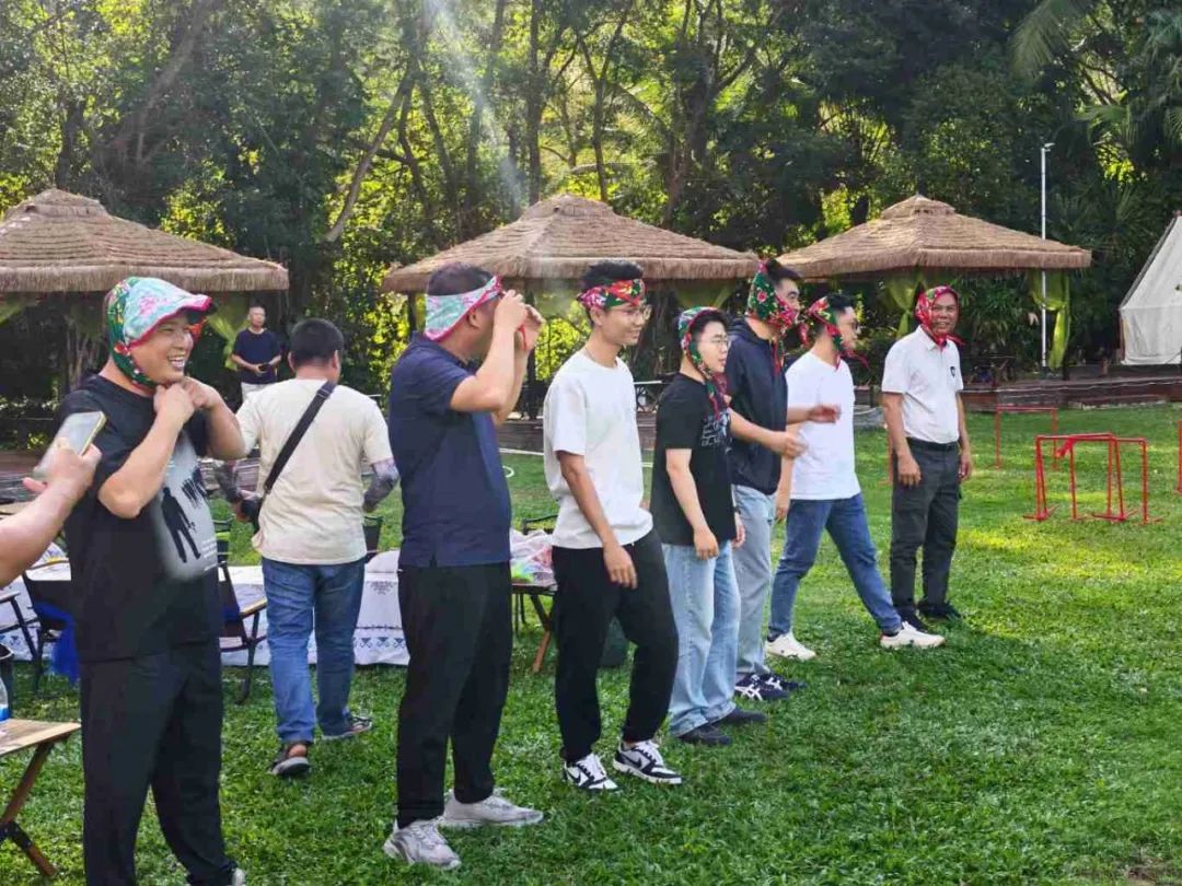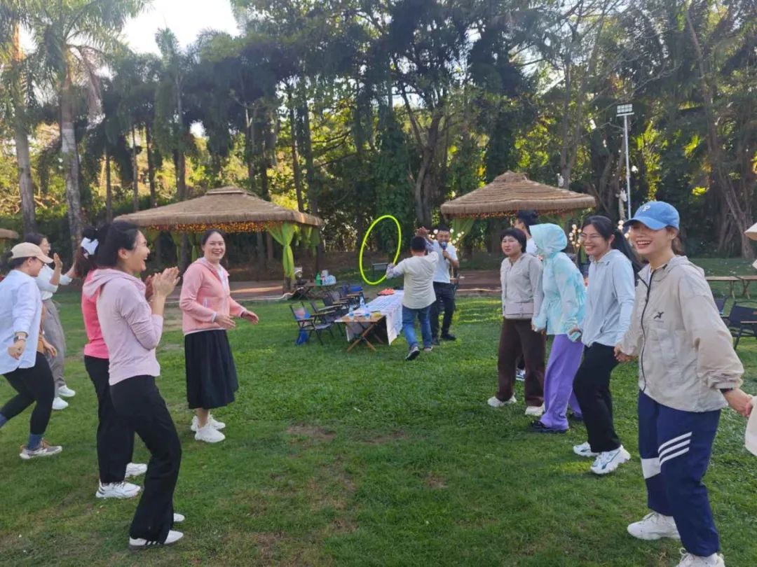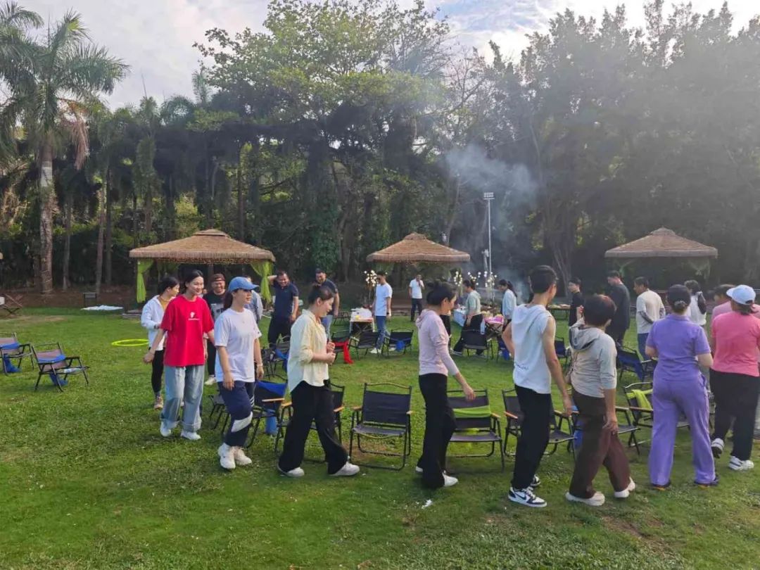 當日午后,全體員工滿懷期待地齊聚在團建活動場地?;顒右潦?,一系列妙趣橫生的暖場小游戲迅速點燃了現(xiàn)場的熱烈氛圍。在“四平八穩(wěn)”“筷子夾球”“草坪龍舟”“重走長征路”等游戲中,展現(xiàn)出了高度的團隊精神和競技熱情。這些小游戲不僅讓大家在輕松愉快的氛圍中迅速消除了工作中的疲憊與壓力,更讓大家深刻體會到了團隊協(xié)作的重要性,為后續(xù)的活動奠定了良好的基礎(chǔ)。