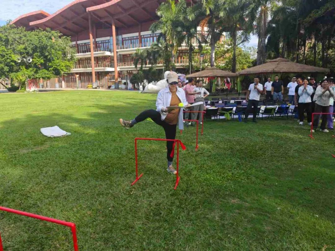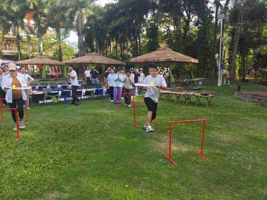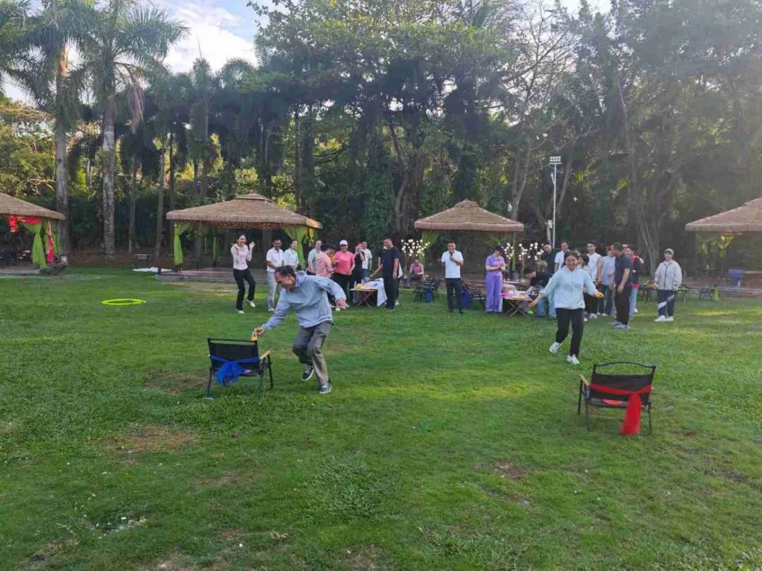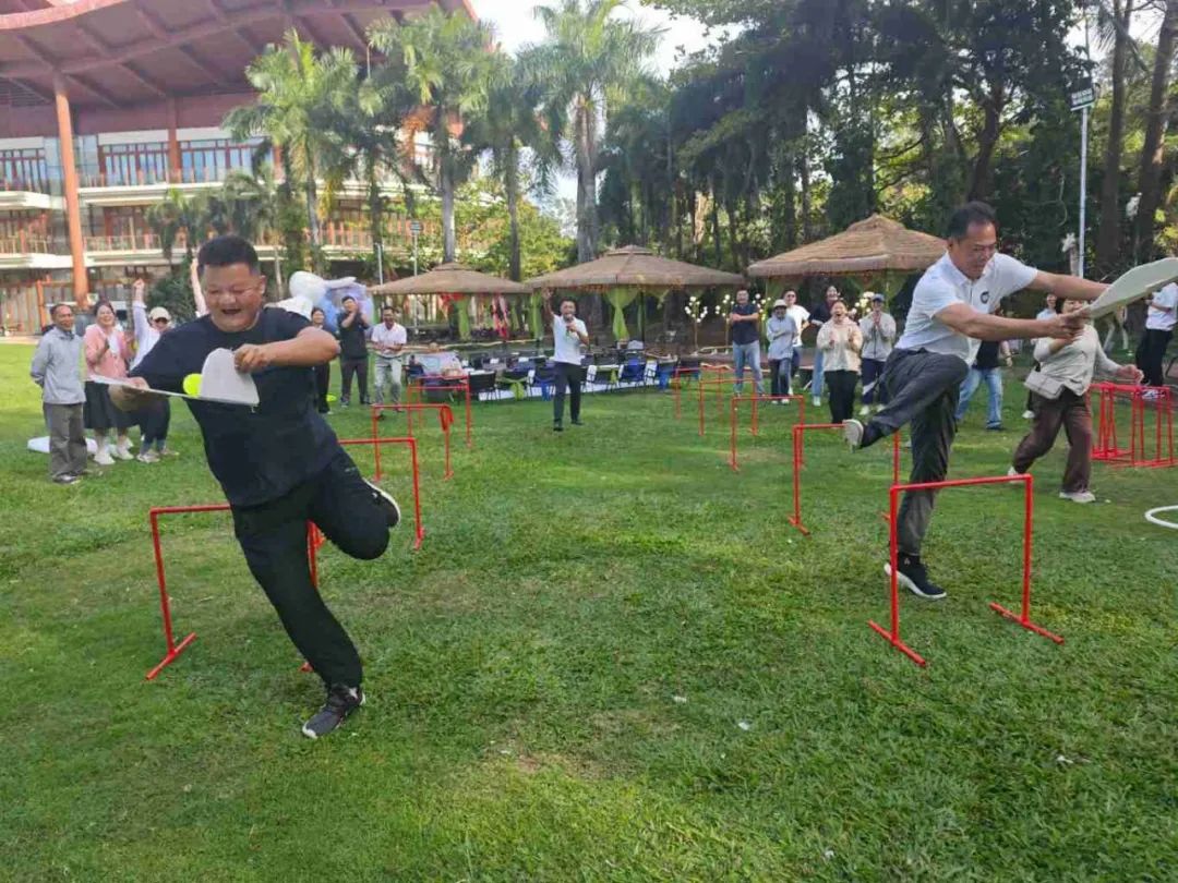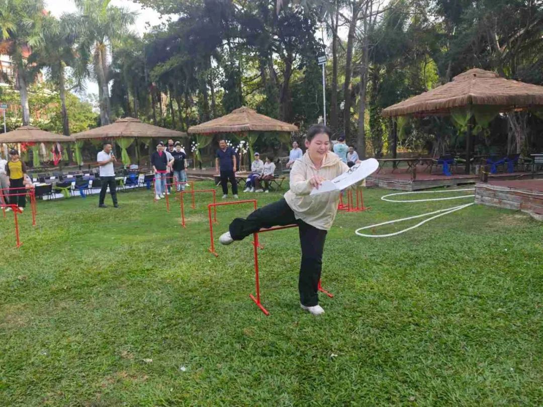 當日午后,全體員工滿懷期待地齊聚在團建活動場地?;顒右潦?,一系列妙趣橫生的暖場小游戲迅速點燃了現(xiàn)場的熱烈氛圍。在“四平八穩(wěn)”“筷子夾球”“草坪龍舟”“重走長征路”等游戲中,展現(xiàn)出了高度的團隊精神和競技熱情。這些小游戲不僅讓大家在輕松愉快的氛圍中迅速消除了工作中的疲憊與壓力,更讓大家深刻體會到了團隊協(xié)作的重要性,為后續(xù)的活動奠定了良好的基礎(chǔ)。